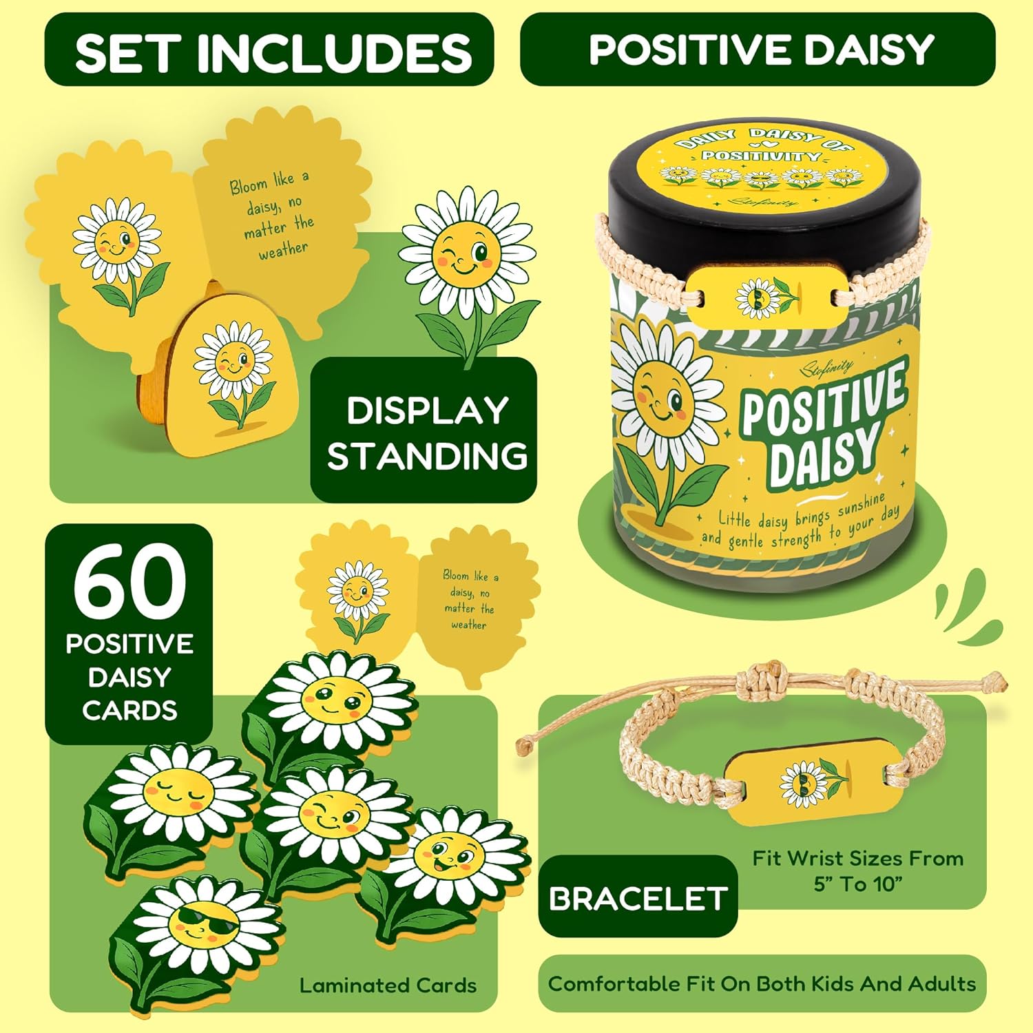 Brighten someone’s day with the Stofinity Positive Daisy Gifts for Women! This delightful jar is filled with uplifting positive affirmation cards, making it the perfect emotional support gift for teachers, friends, or anyone in need of a little encouragement. Each card features a unique, inspiring message designed to boost confidence and spread positivity. Ideal for teens and adults alike, these cute desk accessories not only serve as a daily reminder of self-love but also add a charming touch to any workspace. Whether you’re celebrating Teacher Appreciation Week or simply want to show someone you care, the Stofinity Positive Daisy Gifts are a thoughtful and heartwarming choice. Give the gift of inspiration and let your loved ones know they are valued and supported!